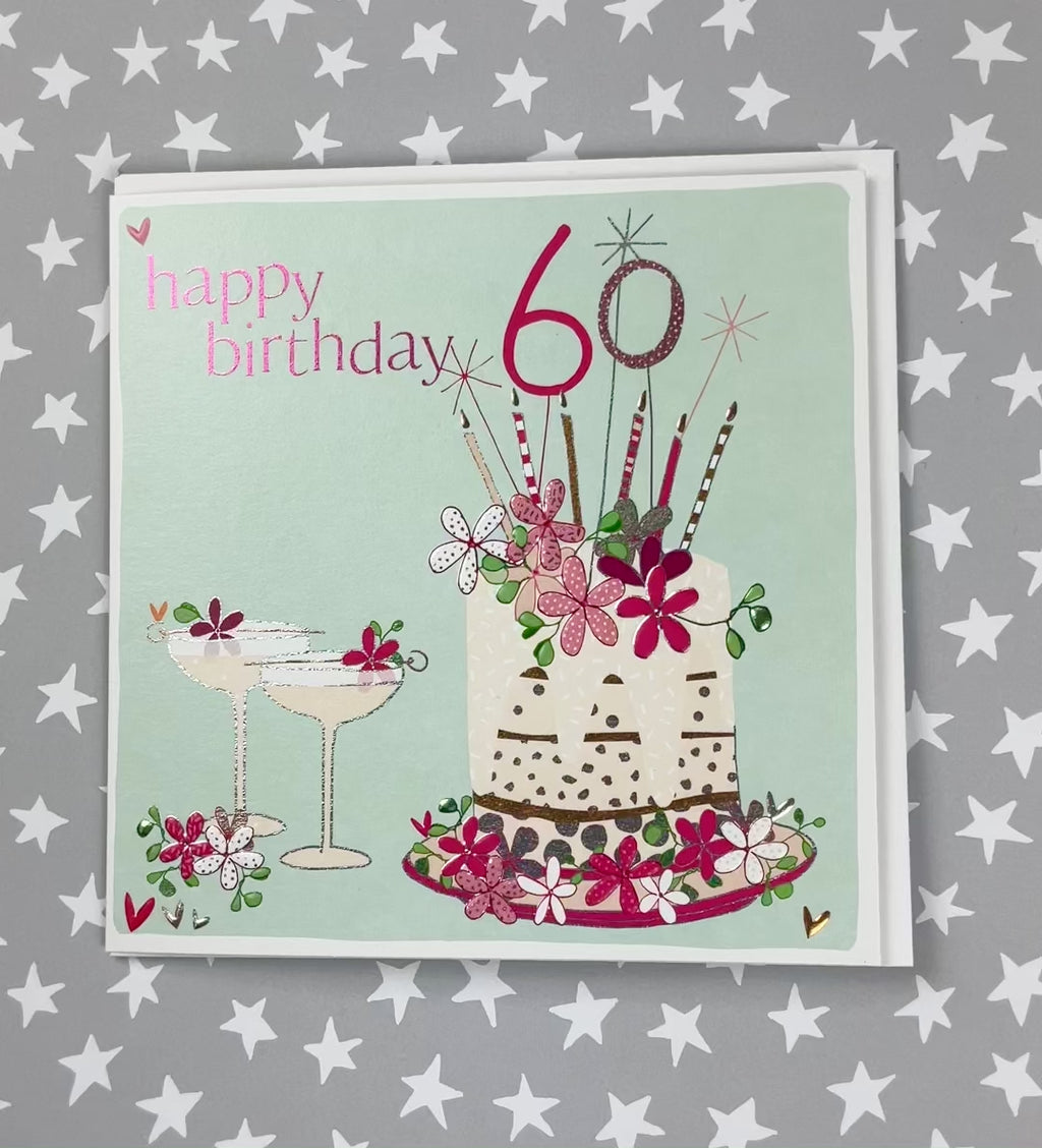 60th Birthday Card. Foiled and embossed, with a white envelope.