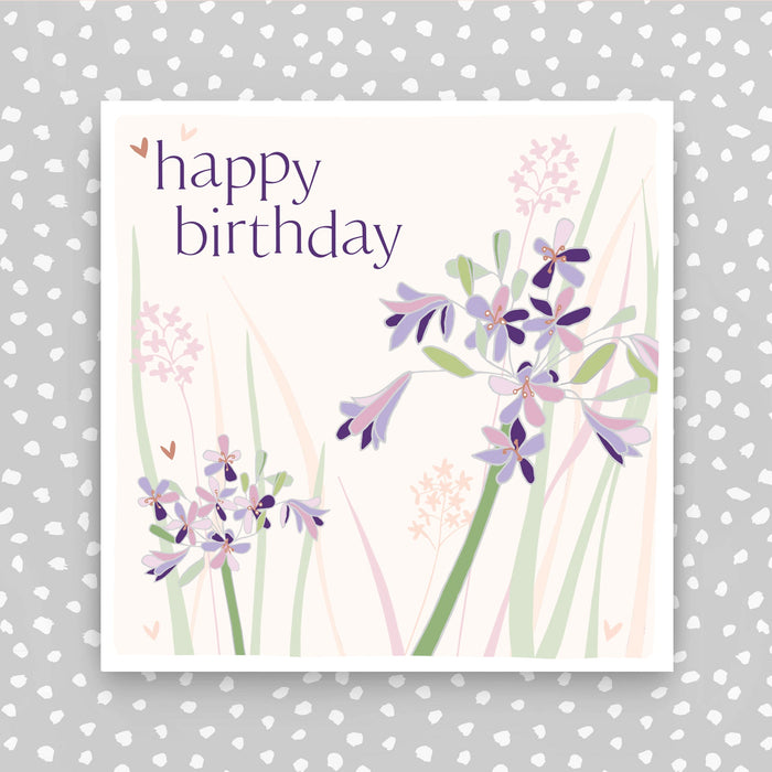 Happy Birthday - Agapanthus. Foiled and embossed. Supplied with an envelope.