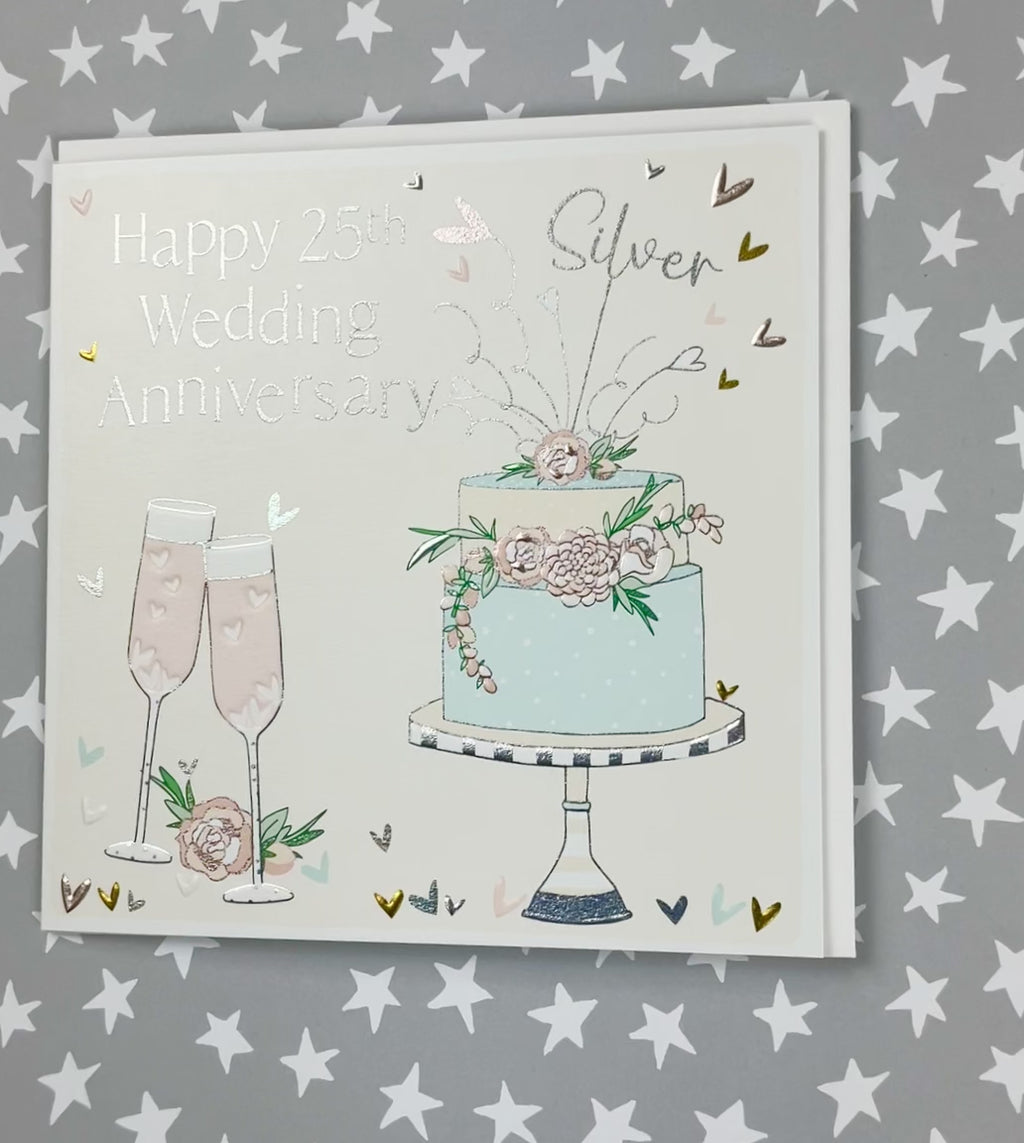 25th Wedding Anniversary. Foiled and embossed. Supplied with an envelope.