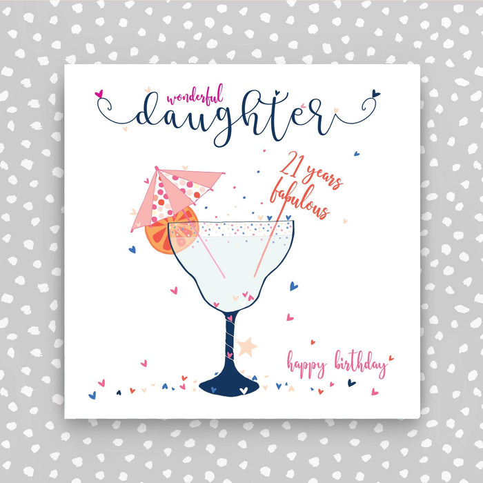 Wonderful Daughter 21st birthday card with a cocktail theme.