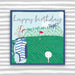 Golf - Happy Birthday Greeting Card. Finished with foiled lettering. Supplied with an envelope.