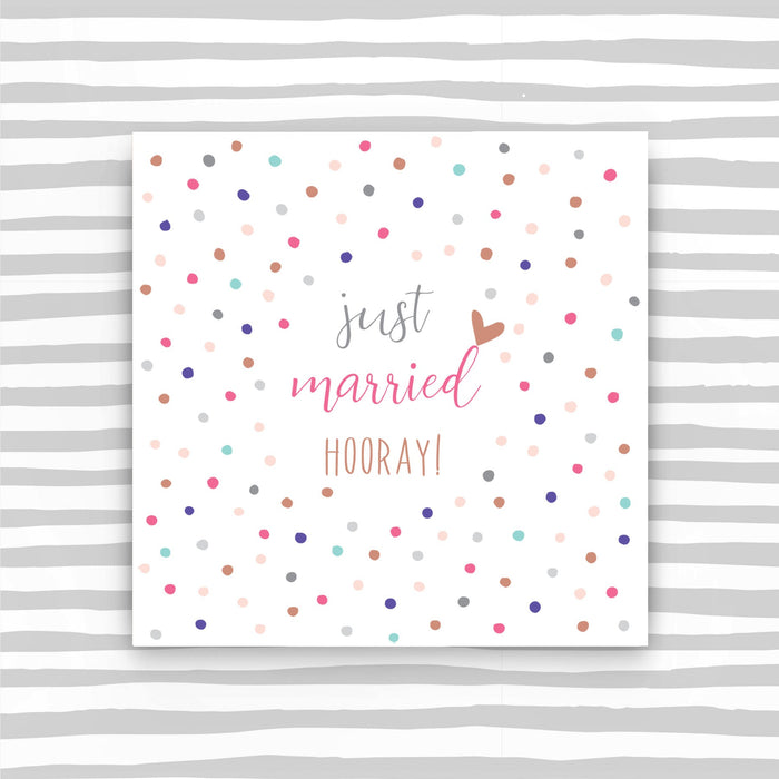 Just Married - Hooray! Printed on luxury board, embossed and foiled.