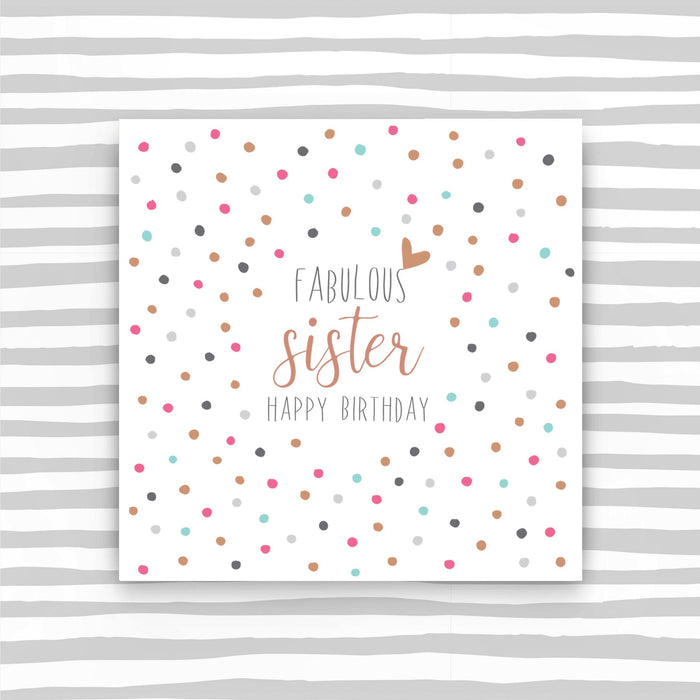 Fabulous Sister Happy Birthday. Printed on luxury board, embossed and foiled.