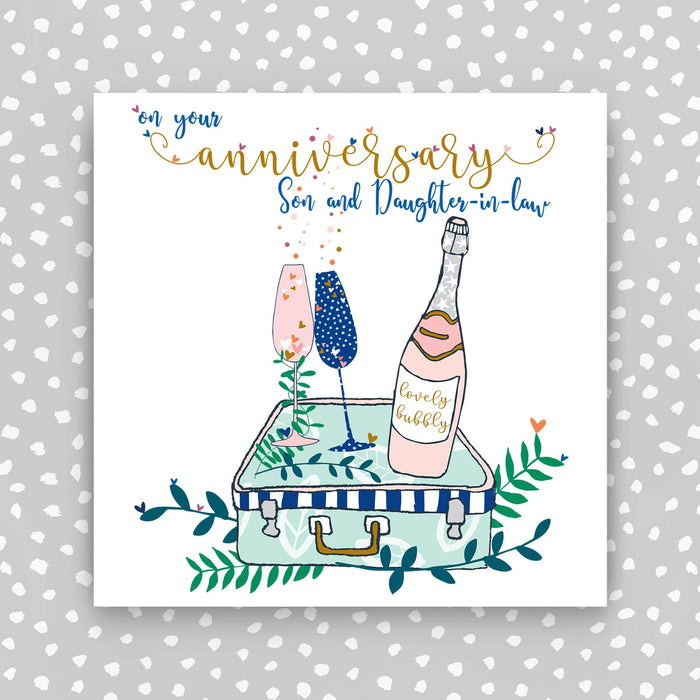 Son and Daughter-in-law Anniversary. Foiled, Embossed and hand-finished with pearls.