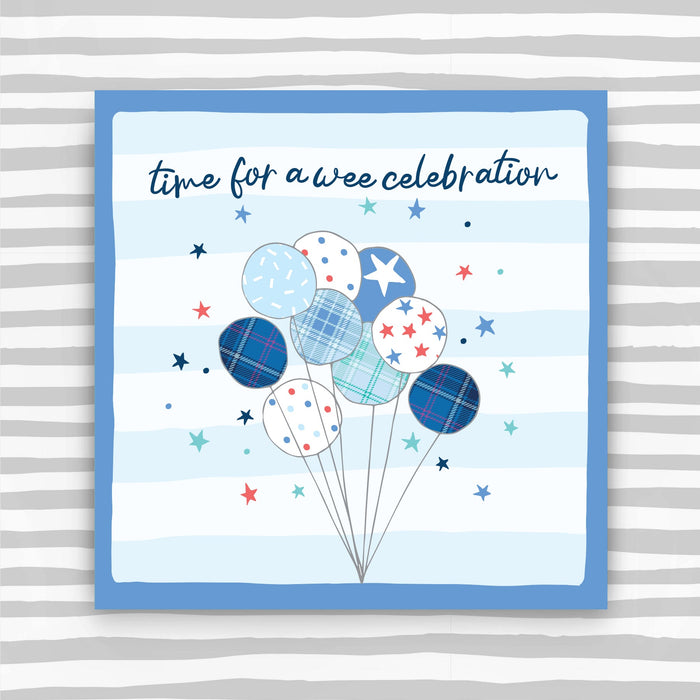 Scottish - time for a wee celebration blue. Foiled with silver. Supplied with an envelope.