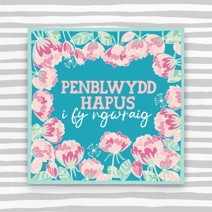 Welsh - Penblwydd Hapus i fy ngwraig (Wife). Supplied Supplied with a white envelope.