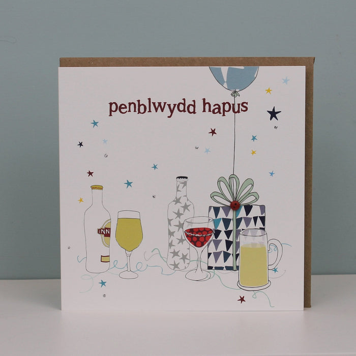 Penblwydd Hapus (Happy Birthday). Hand-finished with embellishments.