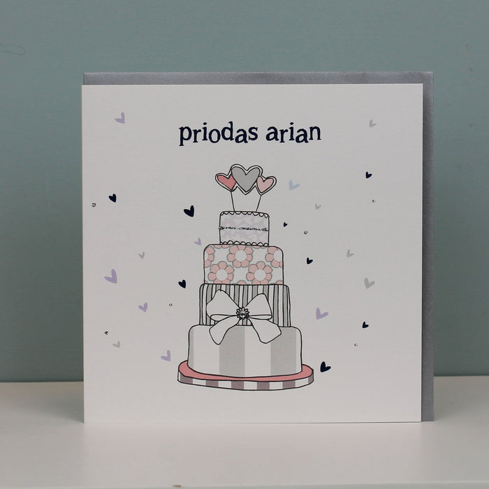 Priodas Arian (Silver Wedding Anniversary). Hand-finished with embellishments.