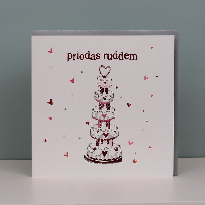 Priodas Ruddem (Ruby Wedding Anniversary). Hand-finished with embellishments.