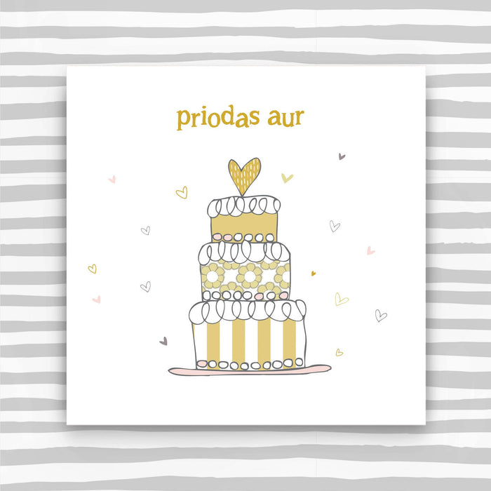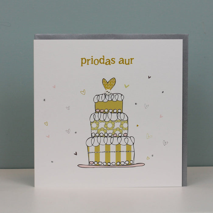 Priodas Aur (Golden Wedding Anniversary). Hand-finished with embellishments.